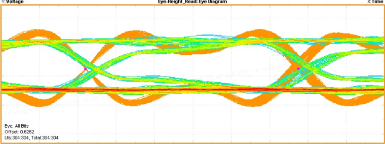 • Read‑direction data signal eye diagram testing verifies that the UH8 series SSDs can accurately return read data and correctly receive and parse it without errors.